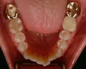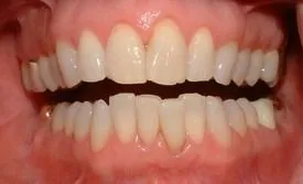 Moderate crowding treated with Invisalign for 14 months. Finished with cosmetic smoothing and recontouring of worn teeth along with bonding of two upper incisor teeth that were chipped.