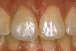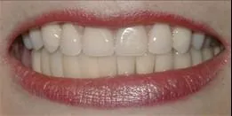 Before: Front (left) Central tooth has a poor restoration. Does not look natural and is not contoured properly to match the gumline of the rest of the teeth.